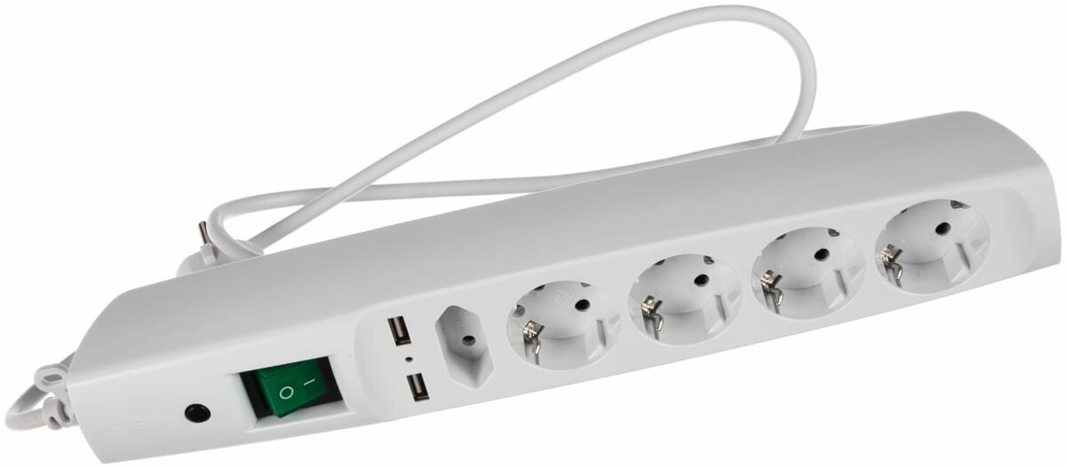 Отзывы на Сетевой фильтр ЭРА USF-5es-2m-USB-W пятиместный с заземлением 2 метра IP20 белый