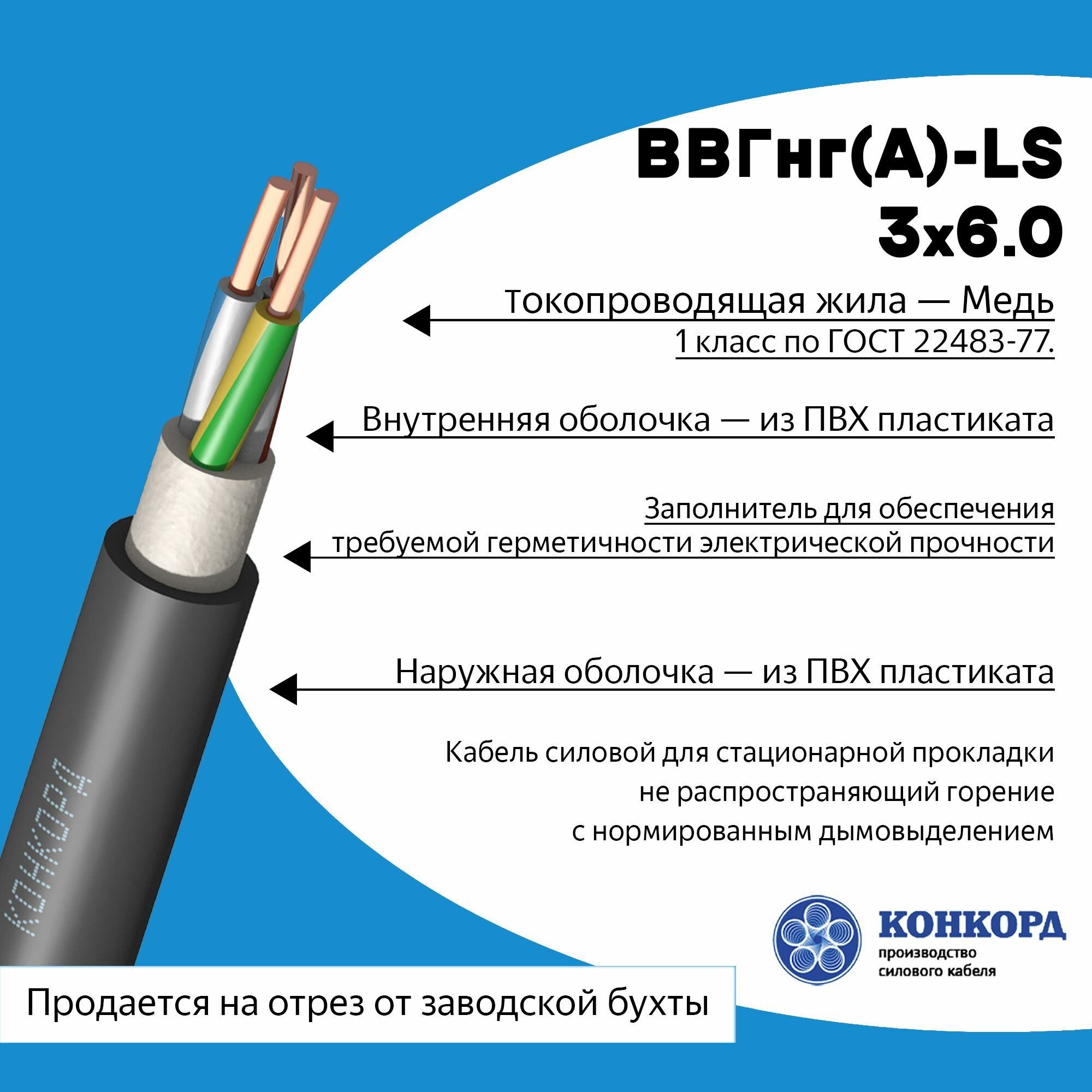 Силовой кабель ВВГнг(A)-LS 3х6 Конкорд 20метров информация: