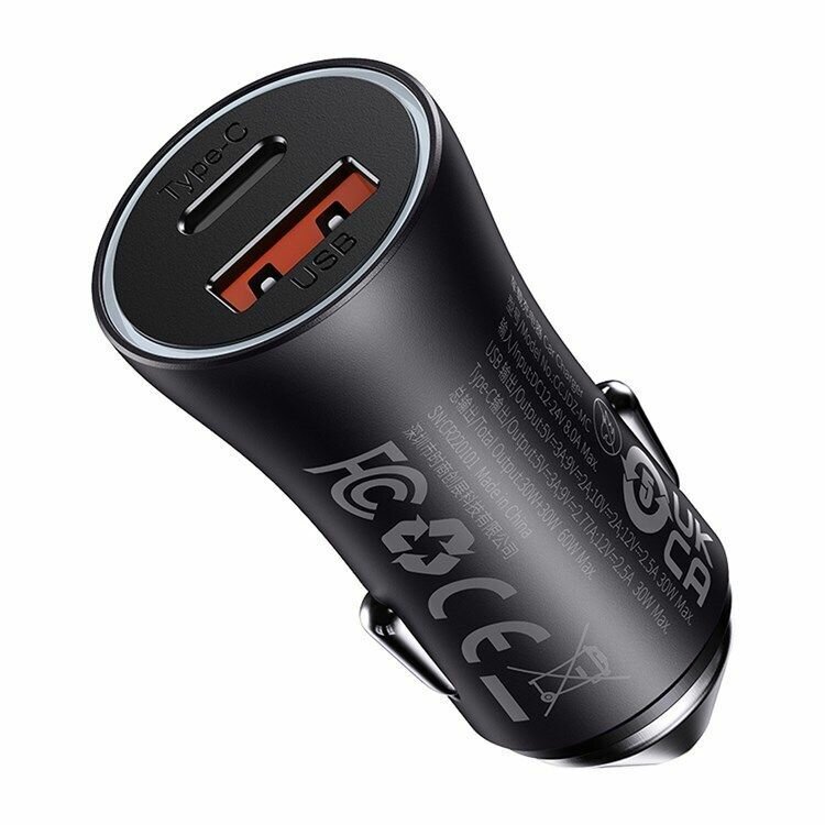 Автомобильное зарядное устройство BASEUS Max Dual, USB+Type-C, 8A, 60W, черный информация: