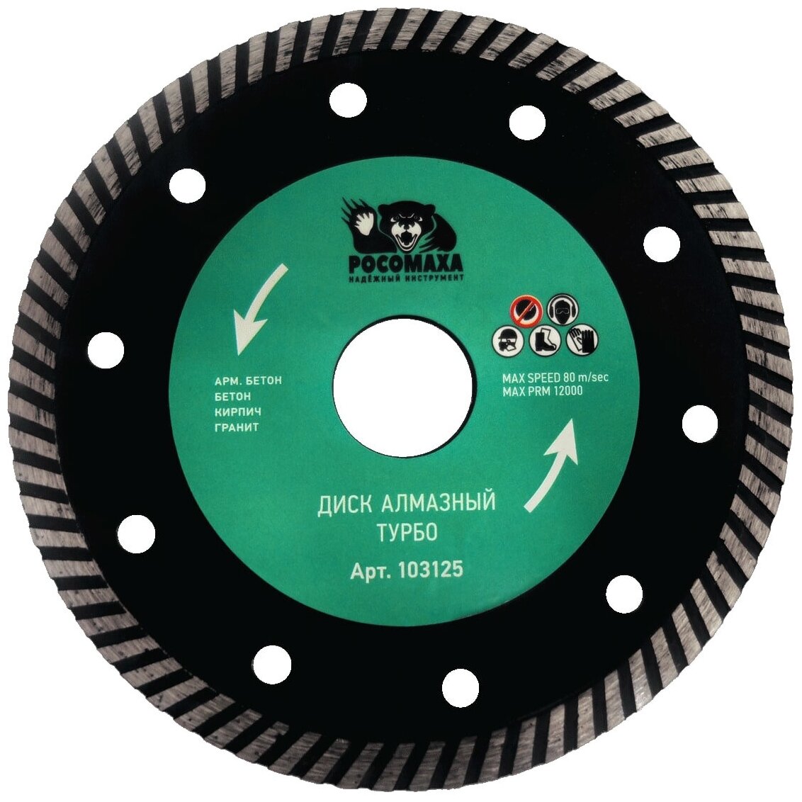 Диск алмазный "Турбо" для бетона, армированного бетона и камня 115х2,0х10х22 "росомаха" информация: