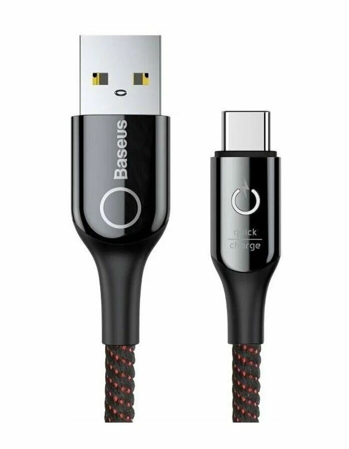 Кабель для зарядки и передачи данных с индикатором, Baseus USB 2.0 A (m) - USB Type-C (m) 1м , C-shaped Light Intelligent Power-off, Черный (CATCD-01)