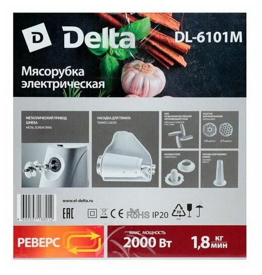Мясорубка DELTA DL-6101M + насадка для томата, белый информация: