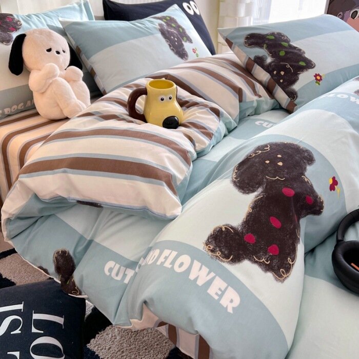 10 цен на Постельное белье "Сонная собака", хлопок, 4 части, 1,5м