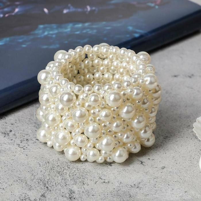10 цен на Браслет жемчуг «Зима» сплошной узор, цвет молочный, d=5 см (комплект из 3 шт)