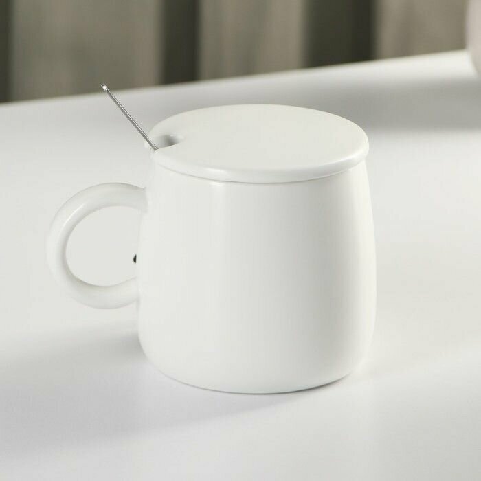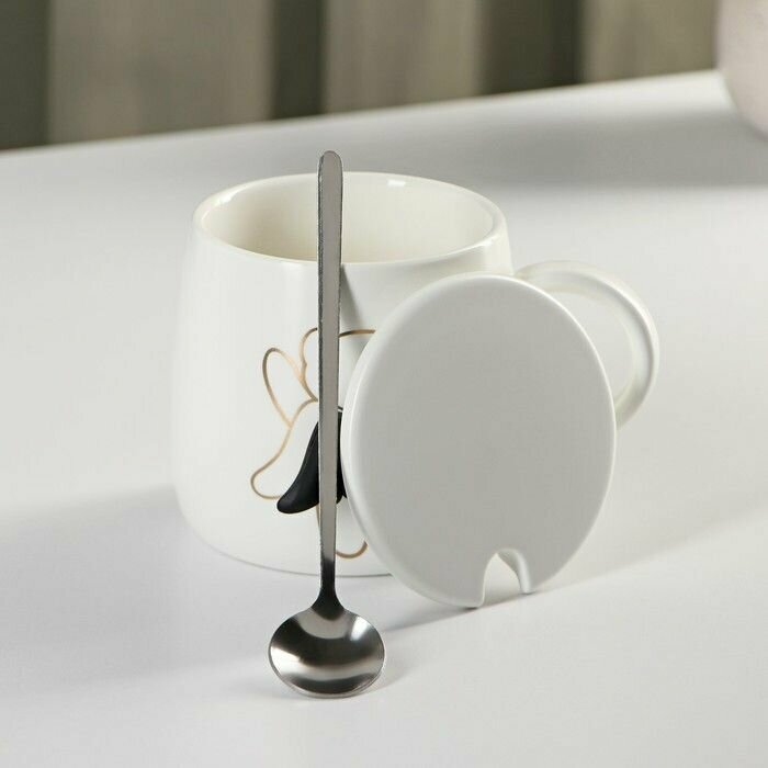Кружка керамическая с крышкой и ложкой Ангелок, 350 мл, цвет белый информация:
