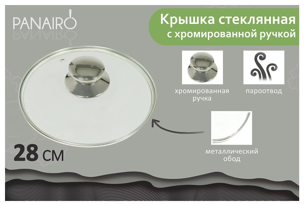 Стеклянная крышка 28см PANAIRO с выпуском пара и хромированной ручкой информация:
