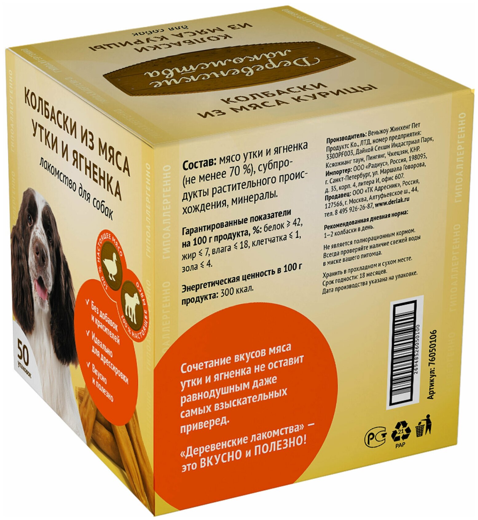 Деревенские лакомства для собак Мини колбаски из мяса утки и ягненка, 8гр, 3 упаковки информация: