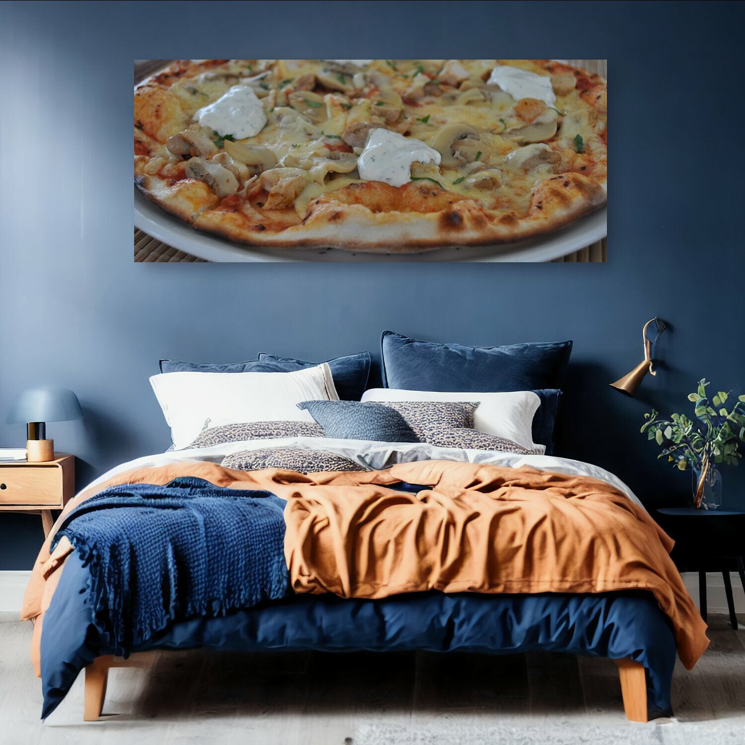 10 цен на Картина на холсте "Пицца, еда, очень вкусно" на подрамнике 175х75 см. для интерьера
