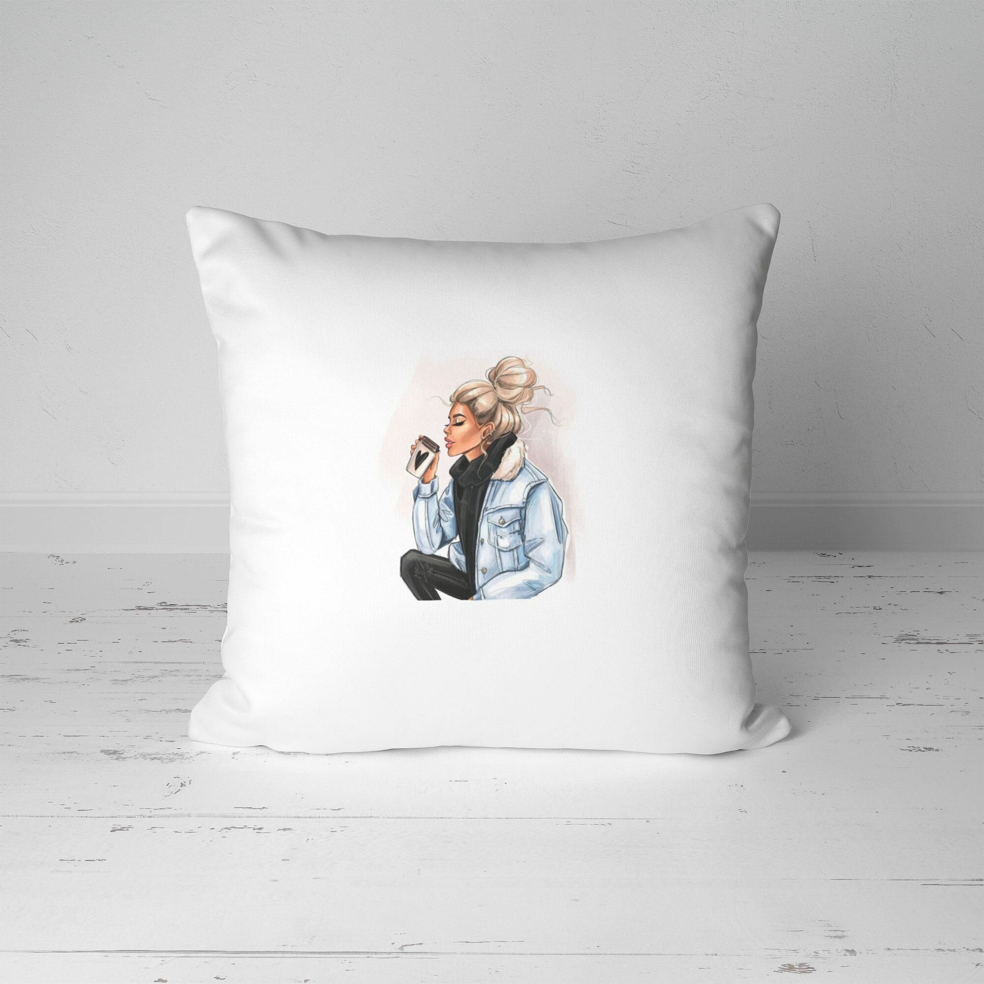 Отзывы на Подушка декоративная 45х45см / Девушкам / Красивые рисунки / Девушка с кофе