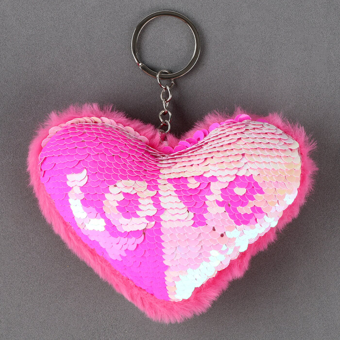 Мягкая игрушка «Сердечко» с пайетками, на брелоке, 10 см, цвет фуксия информация: