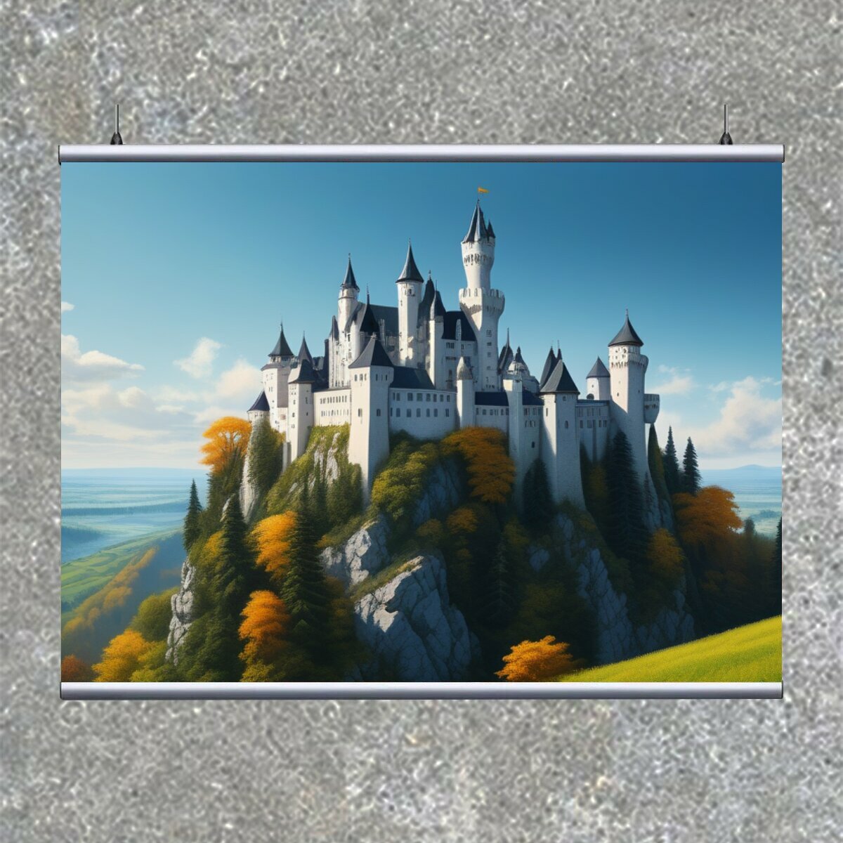 Картина на холсте "Пейзаж с замком картины , " с подвесами 120х90 см. для интерьера на стену информация: