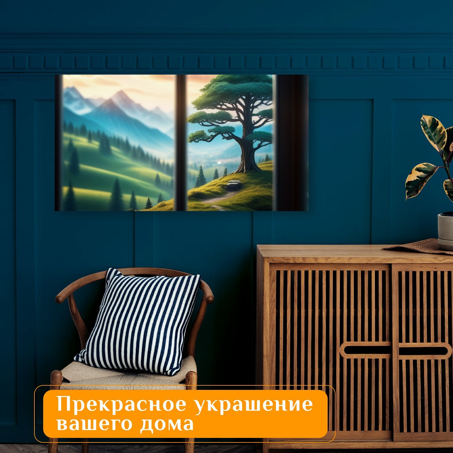 Картина на холсте "Пейзаж с окном картины , " на подрамнике 75х40 см. для интерьера информация: