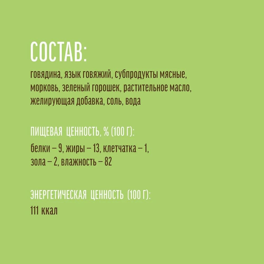 Влажный корм для собак мини-пород "Деревенские лакомства - Домашние обеды" Рубленая говядина с языком и овощами, банка 100 гр.*5 штук информация: