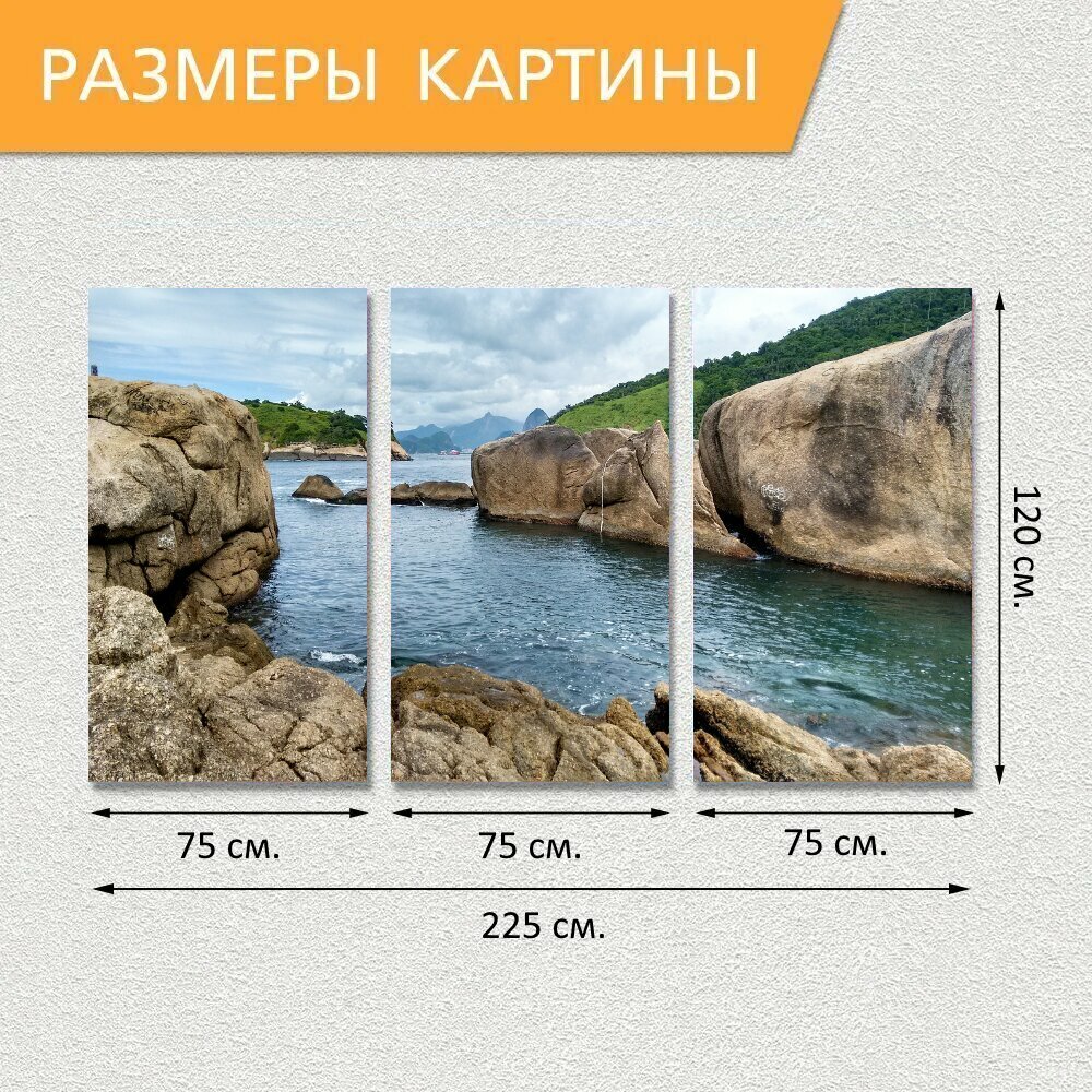 Модульная картина на холсте "Океан, море, пляж" триптих на подрамнике 225х120 см. для интерьера информация: