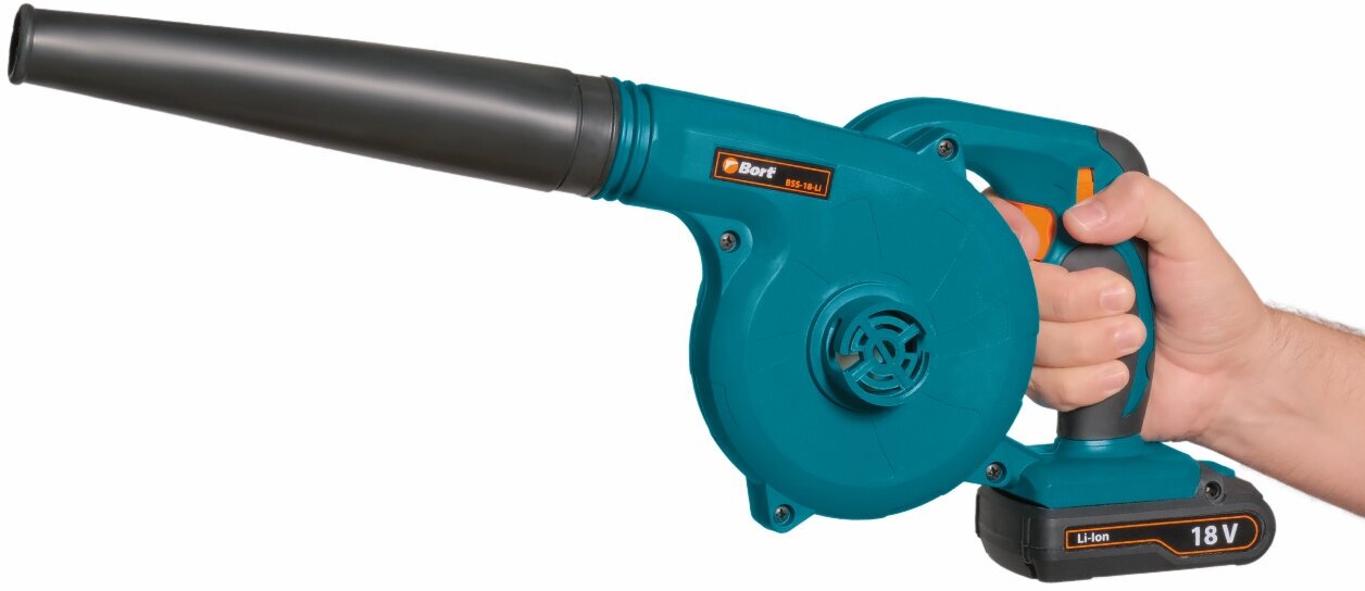 Воздуходувка аккумуляторная Bort BSS-18-LI, 18 В, 0-30 л/сек, 1.3 Ач, Li-Ion, функция выдува 48144