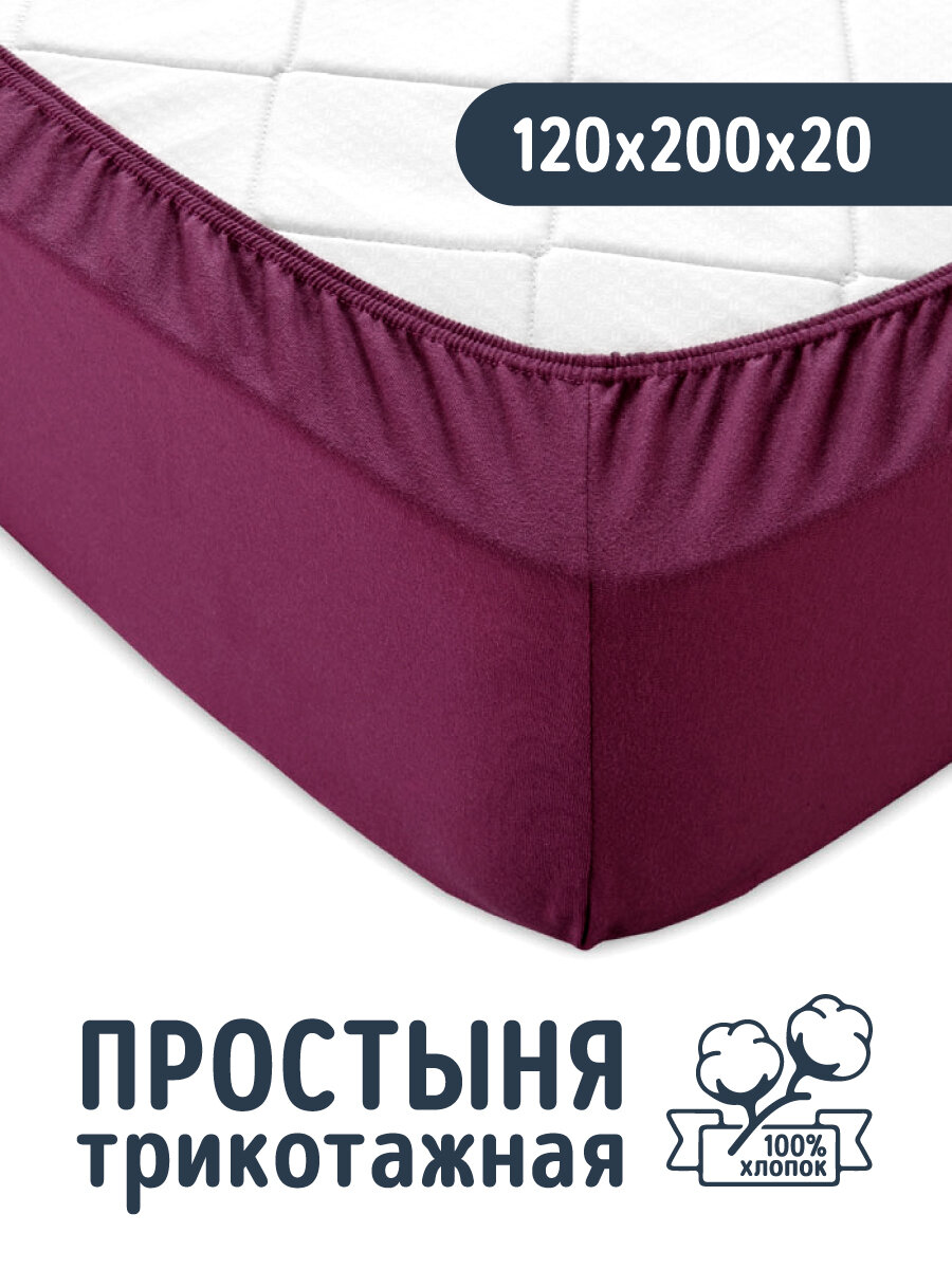 Трикотажная простынь на резинке 120х200 Марсала, 100% хлопок информация:
