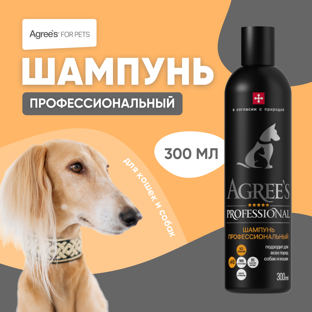 Шампунь для собак и кошек Agree's for pets, для всех типов шерсти, 300мл информация: