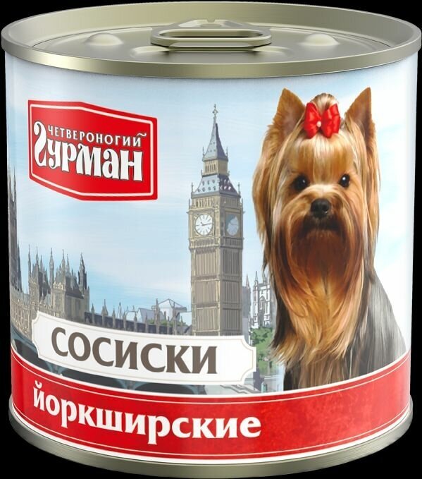 Консервированный корм для собак, Четырехногий Гурман, сосиски Йоркширские, 240 г, 1 шт. информация: