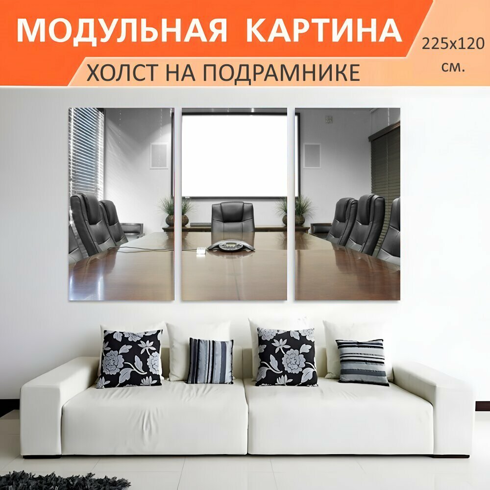 10 цен на Модульная картина на холсте "Офис, работай, бизнес" триптих на подрамнике 225х120 см. для интерьера