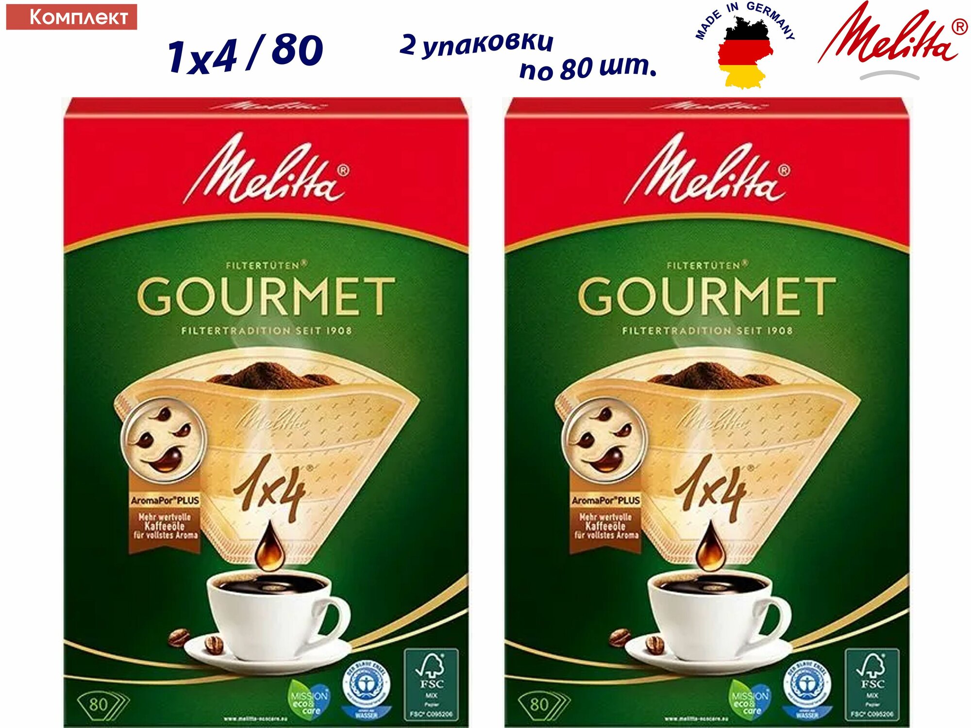 Комплект 2 упаковки. Фильтры бумажные для заваривания кофе 1х4/80 гурме, коричневые MELITTA информация:
