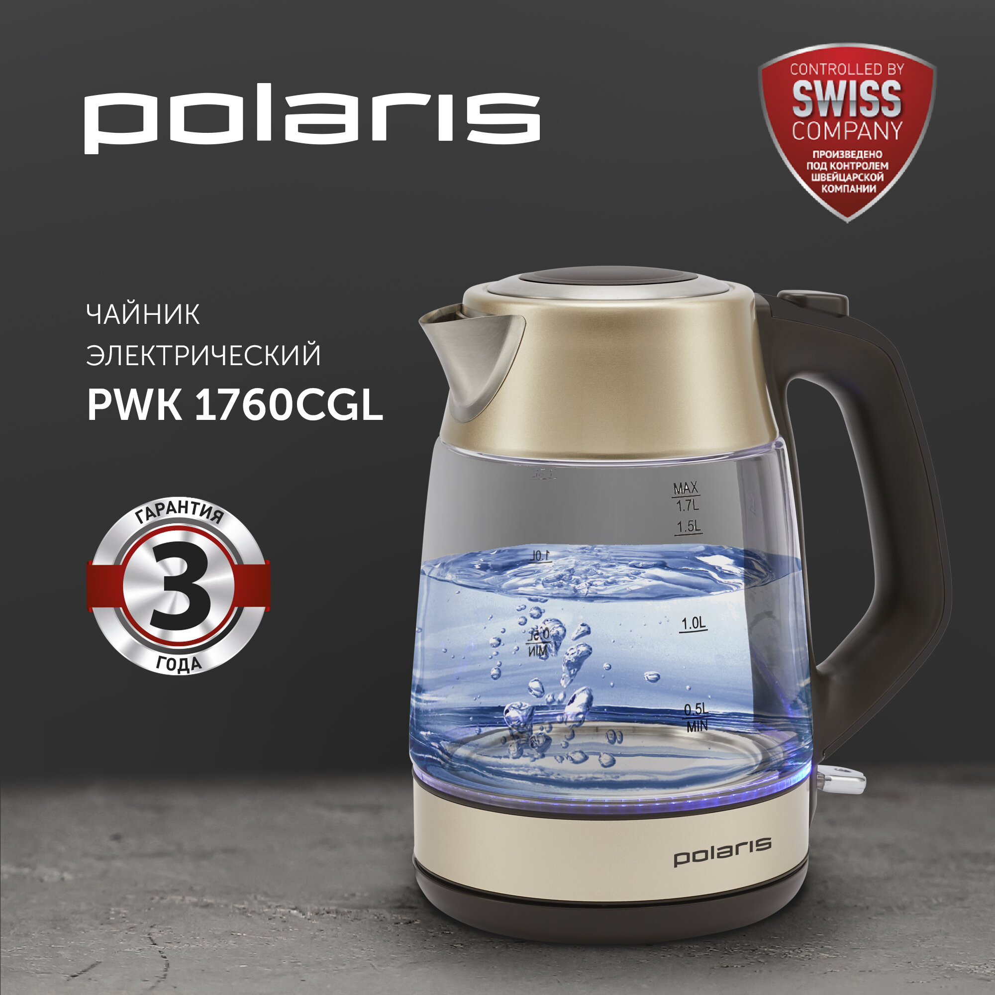 Чайник электрический Polaris PWK 1760CGL 1.7 л, 2.15 кВт, стекло, золотистый информация: