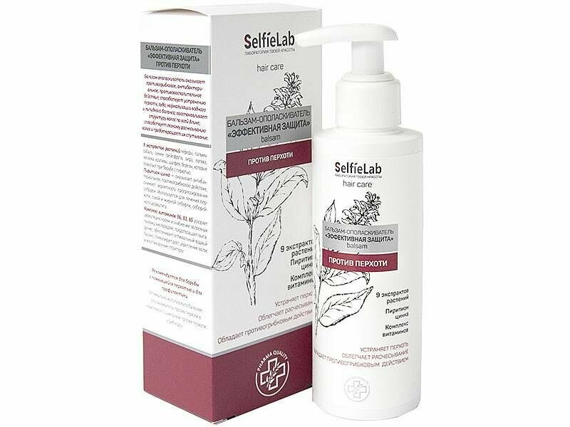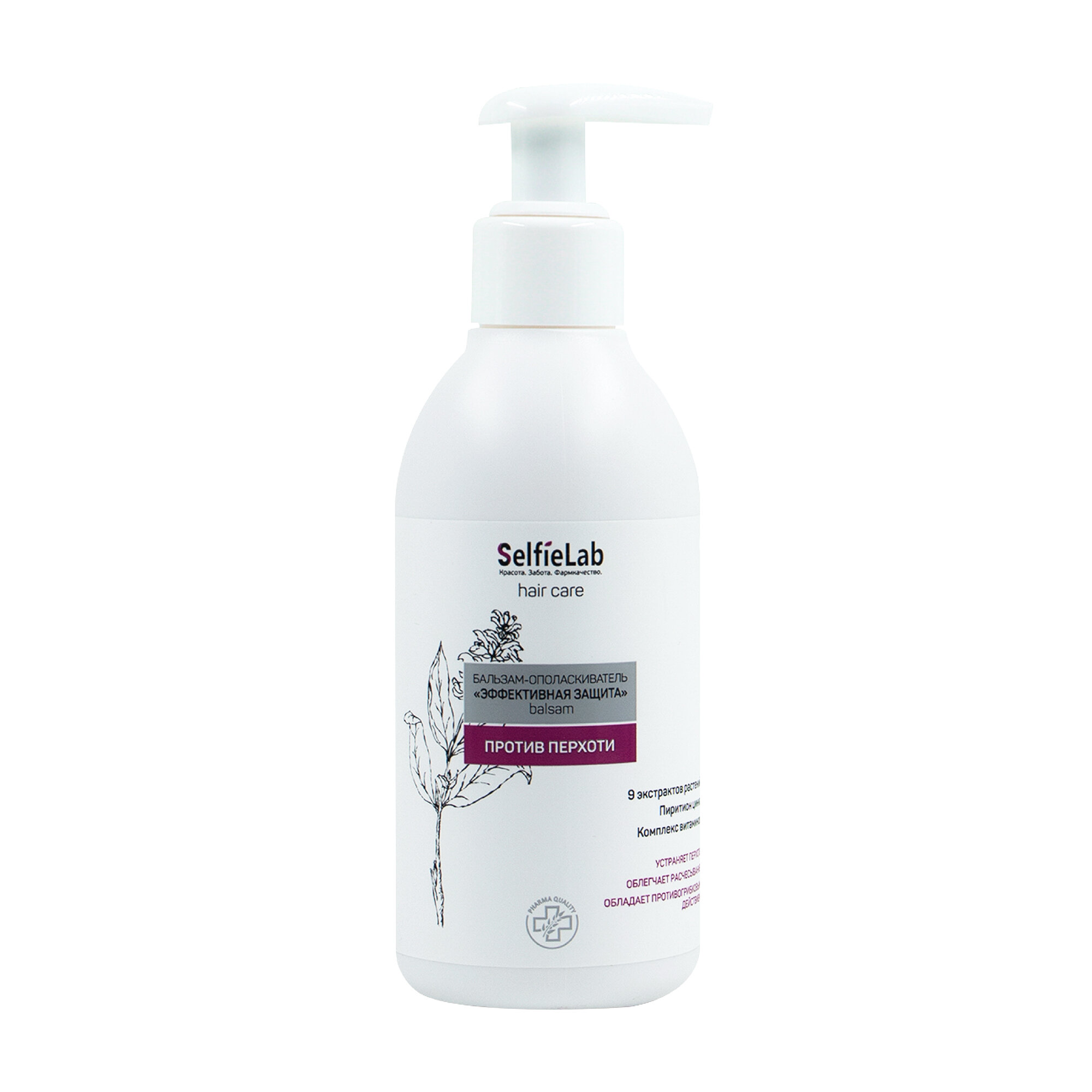 SelfieLab Бальзам-ополаскиватель "Эффективная защита" с пиритионом цинка, натуральными экстрактами растений и комплексом витаминов, 150мл