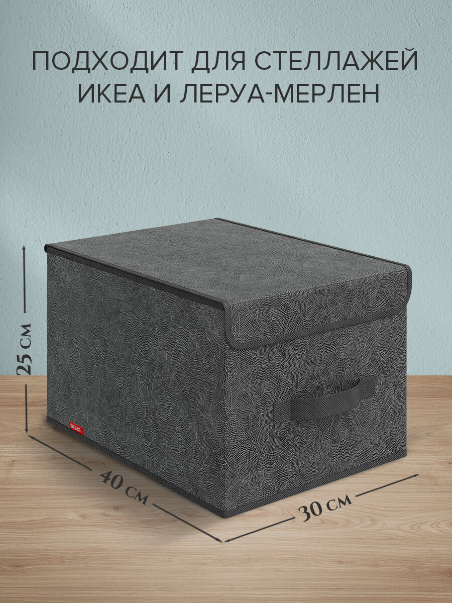 Коробка для хранения вещей с крышкой, короб для хранения стеллажный, корзина, ящик, 30*40*25 см, CLASSIC GREY 971 ₽