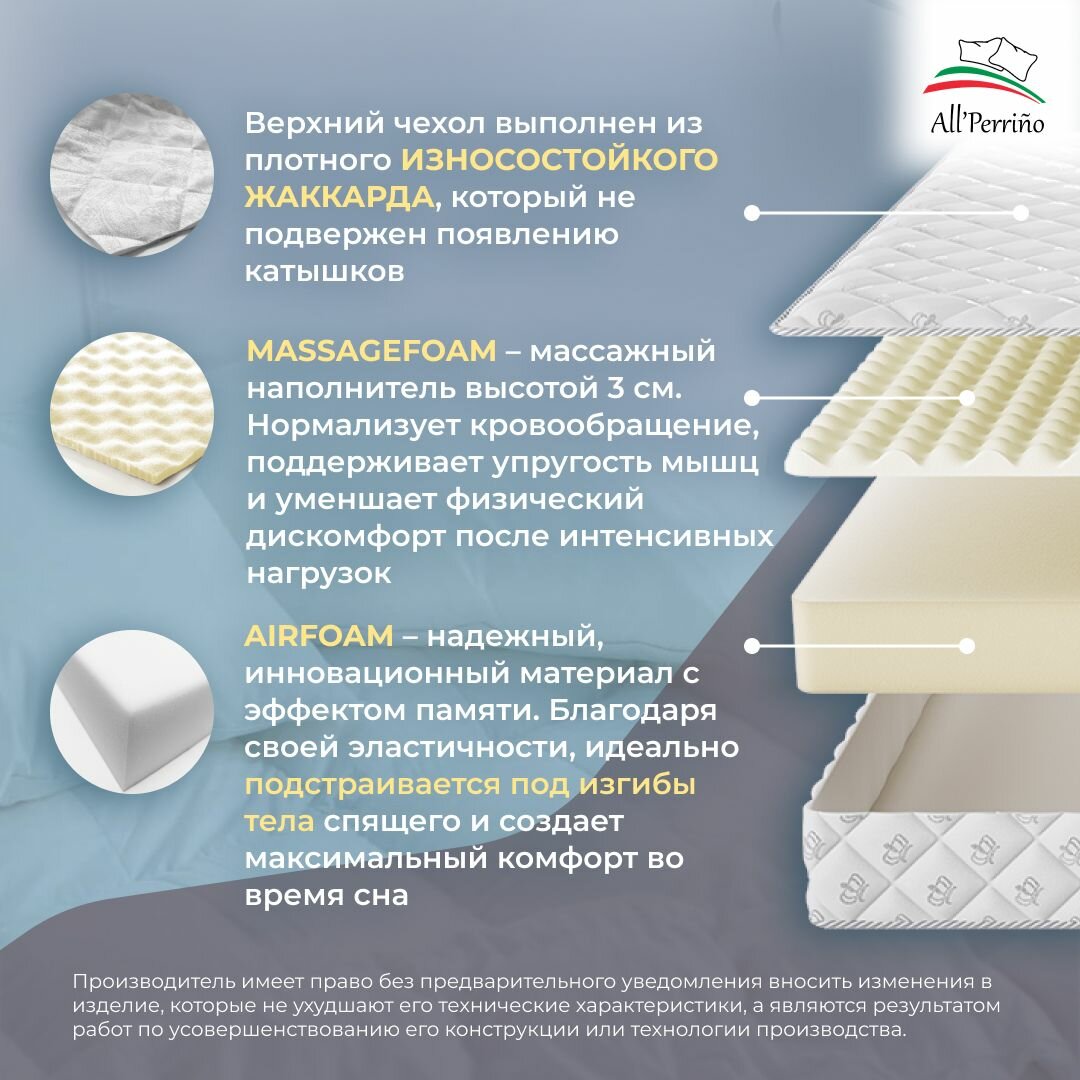 Матрас All'Perrino Rimini Forte беспружинный 14 120х190 информация: