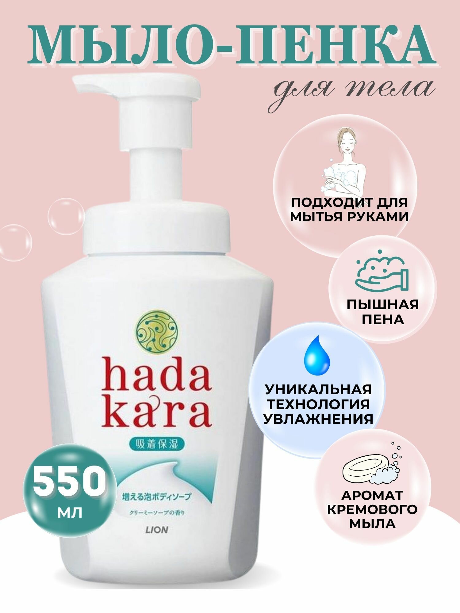 Мыло-пенка для тела Hadakara с ароматом кремового мыла LION 550мл информация:
