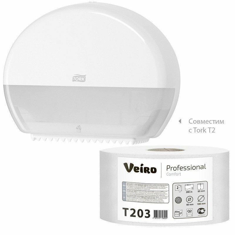 Бумага туалетная 200м, VEIRO Professional (Система T2), комплект 12шт, Comfort, 2-сл, T203