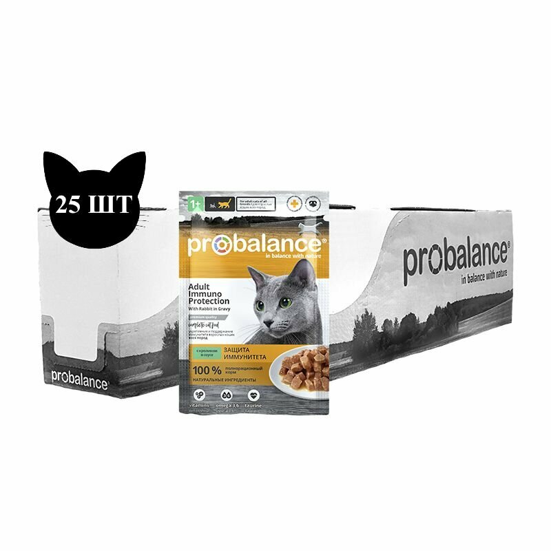Консервированный корм Probalance для кошек Adult Immuno Protection c кроликом в соусе 85 гр * 28шт информация:
