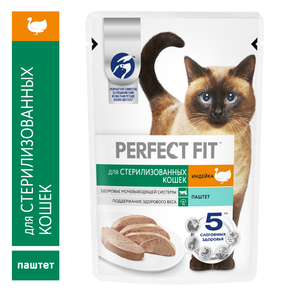 Отзывы на Влажный корм Perfect Fit для стерилизованных кошек, паштет с индейкой, в паучах 28*75 г
