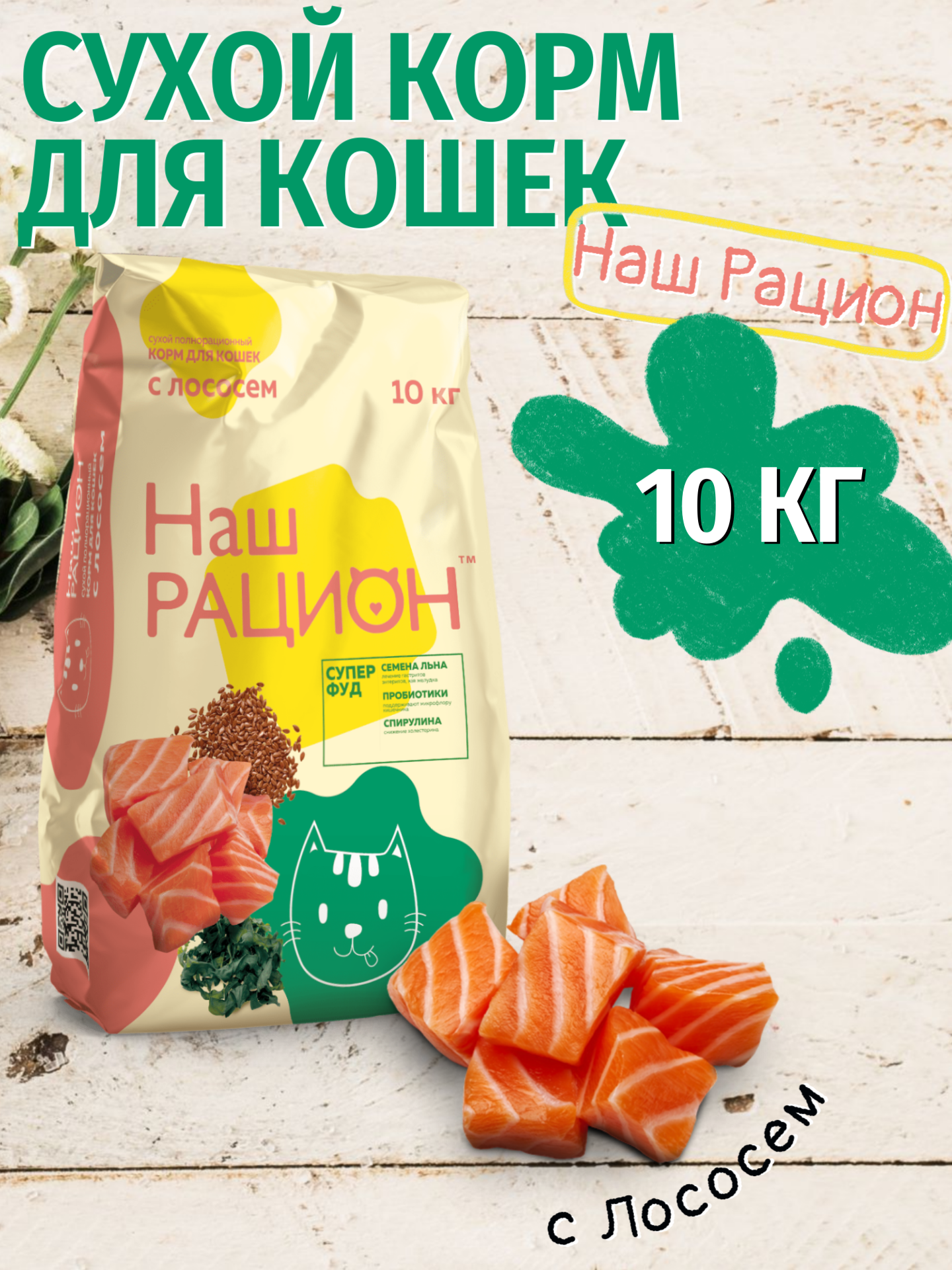 Сухой корм Наш Рацион с лососем для взрослых кошек, 10кг