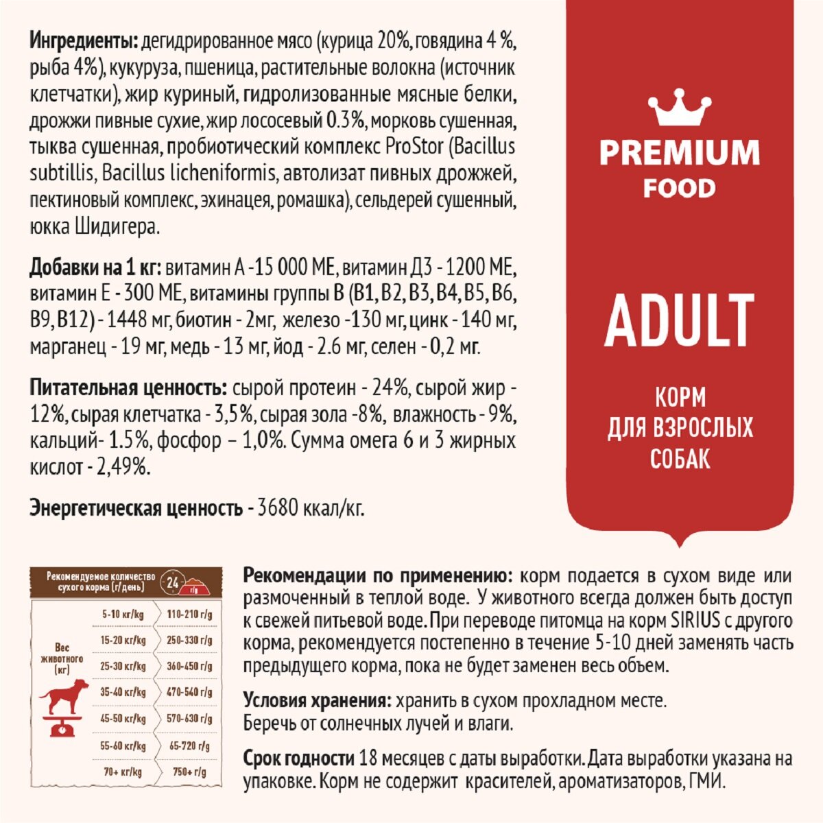 Сухой корм SIRIUS для взрослых собак мясной рацион 15 кг информация: