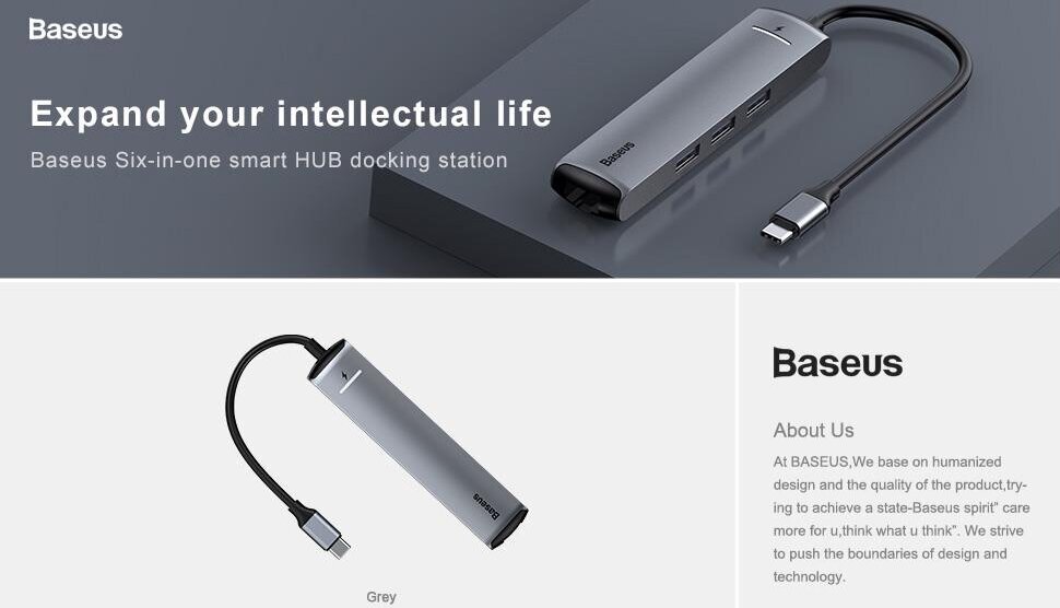 Хаб Baseus Mechanical eye Six-in-one smart HUB Type-C to PD+HDMI+3xUSB3.0+RJ45 серый (CAHUB-J0G)