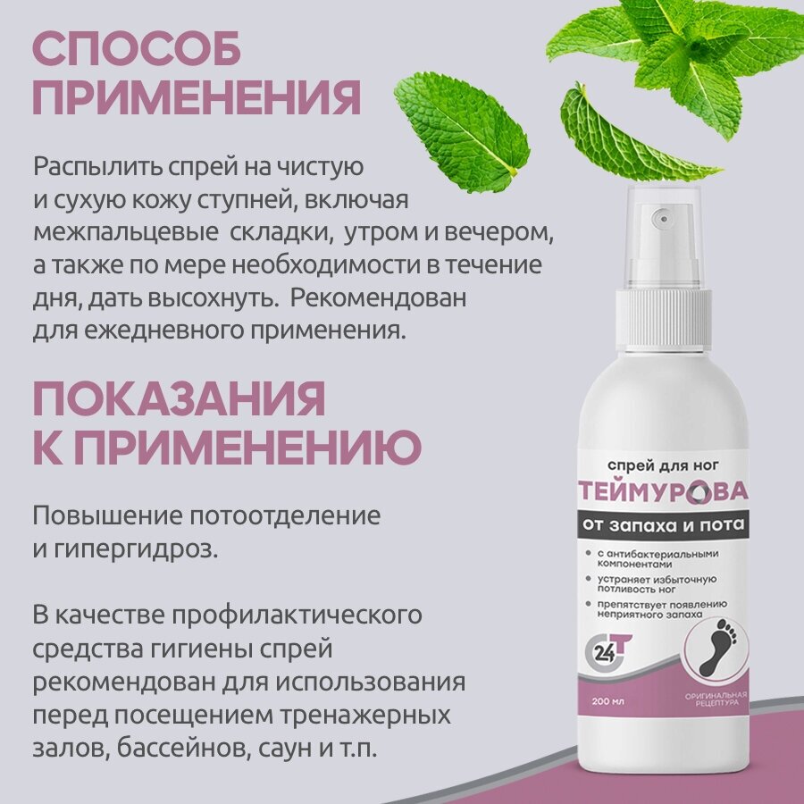 Теймурова Дезодорант для ног от запаха и пота 200 мл Антибактериальный информация: