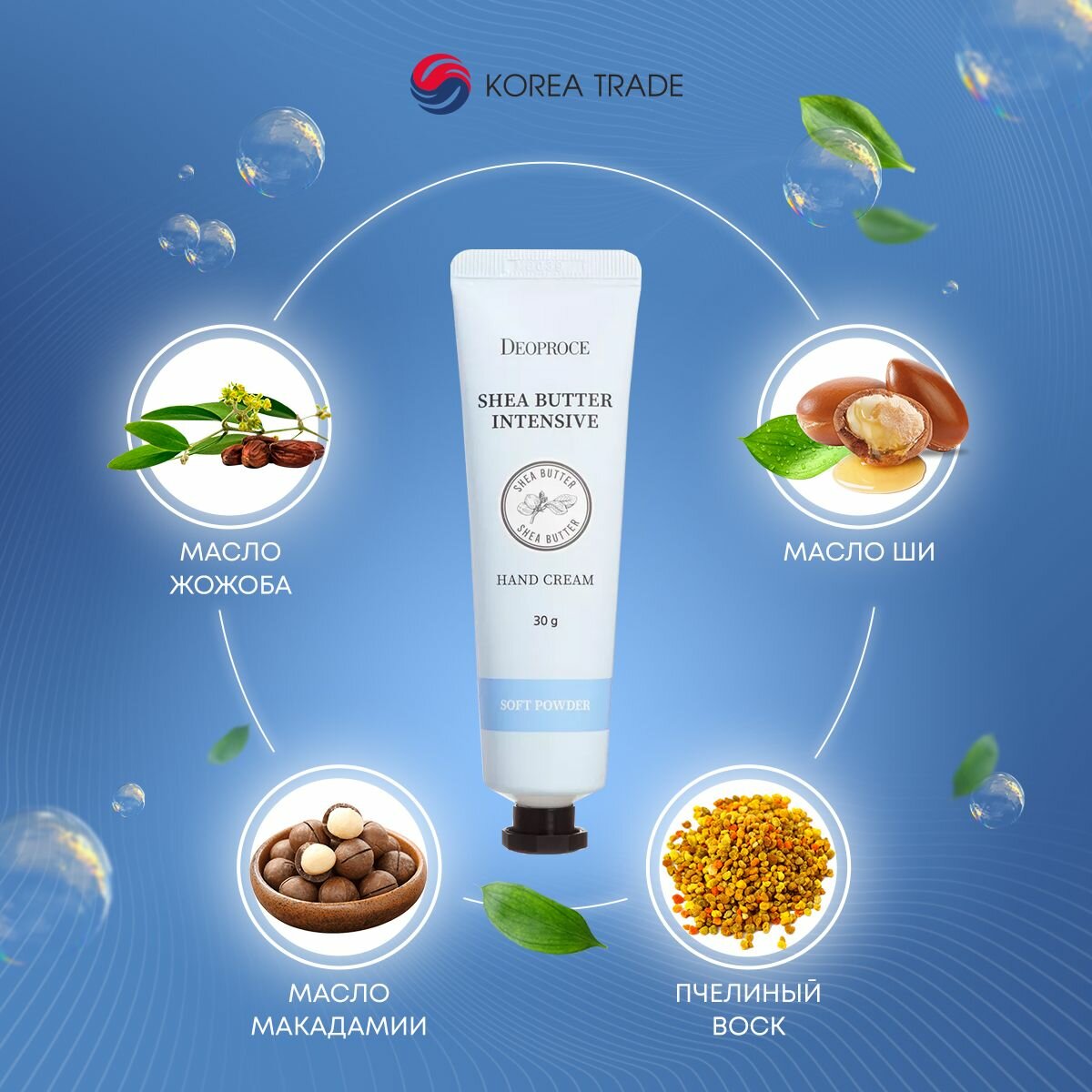 DEOPROCE SHEA BUTTER INTENSIVE HAND CREAM SOFT POWDER Интенсивный увлажняющий крем для рук с маслом ши с ароматом свежести 30г информация: