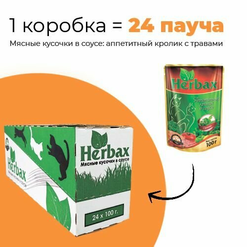 Упаковка 24 пауча для кошек HERBAX Аппетитный кролик в соусе с травами