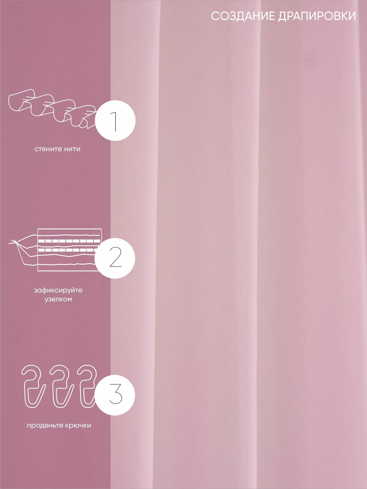 Штора-вуаль Witerra тюль на шторной ленте, для потолочного и круглого карнизов 140х180 см, сирень, 1 шт.