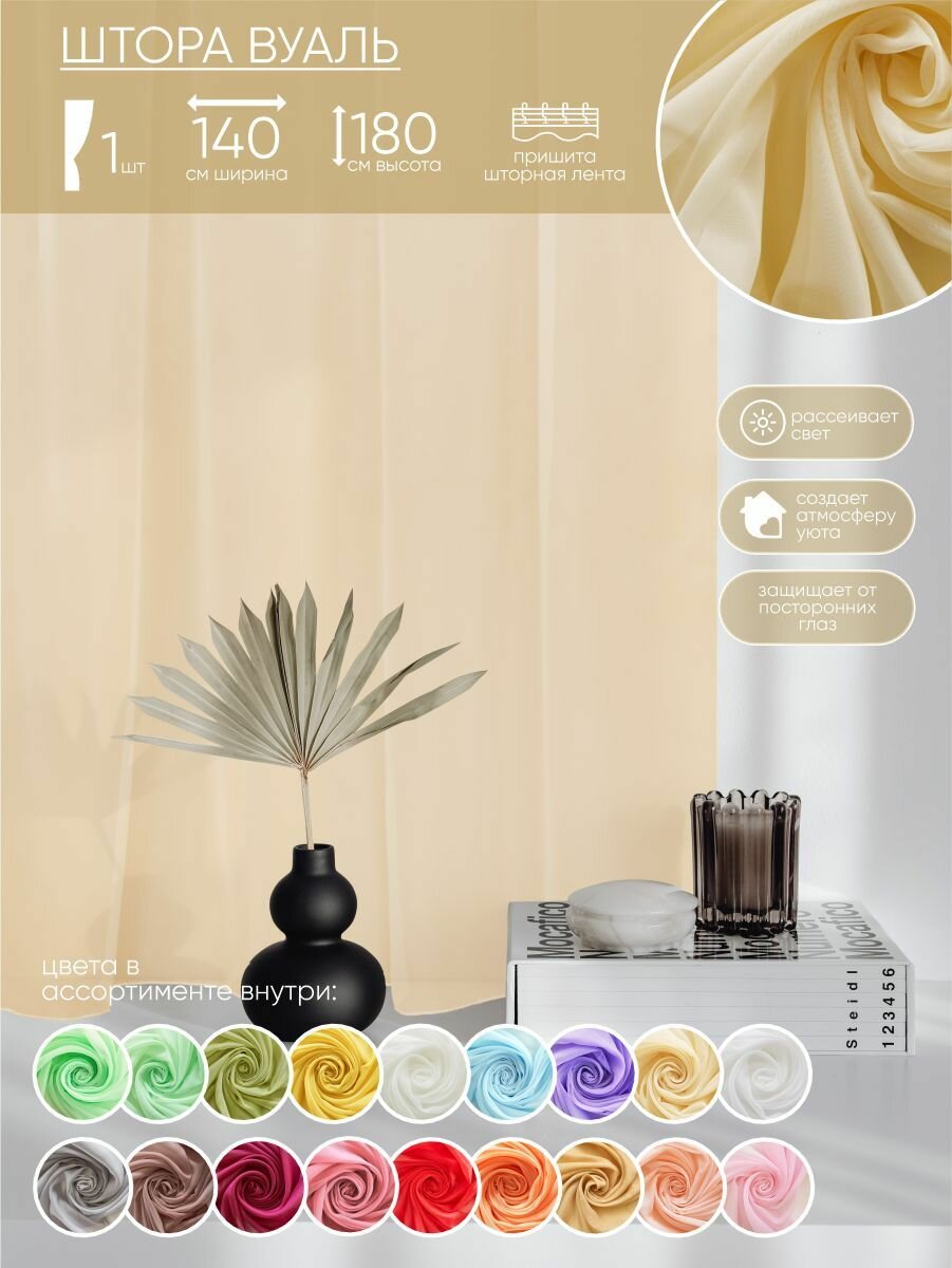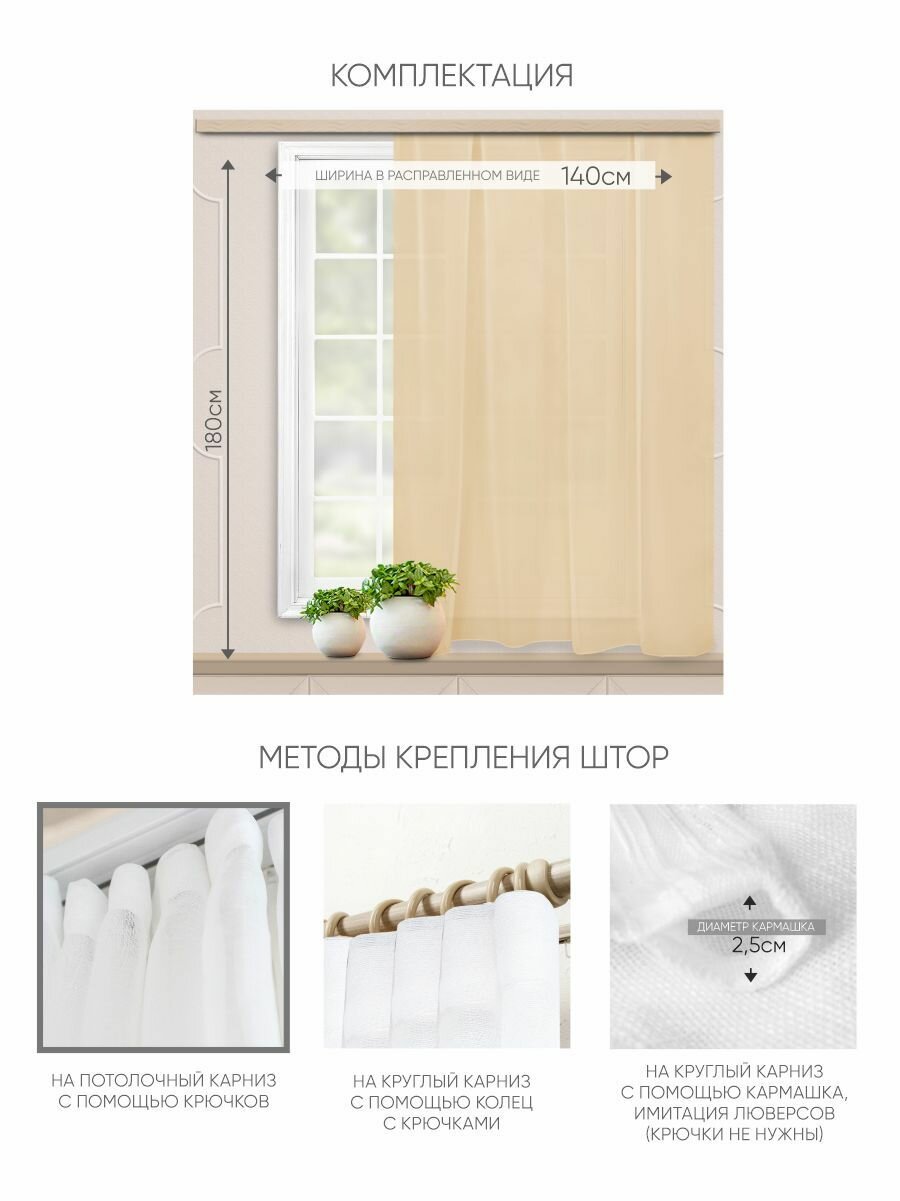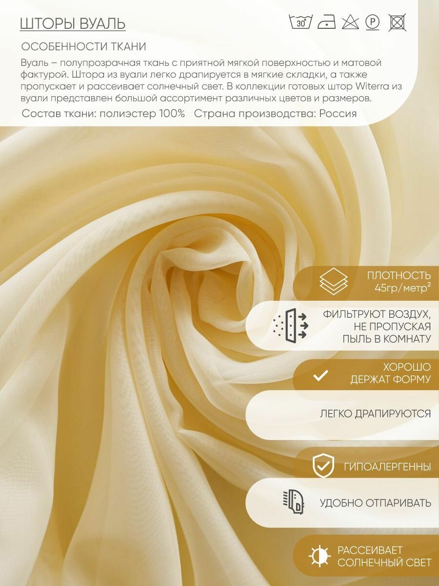 Штора-вуаль Witerra тюль на шторной ленте, для потолочного и круглого карнизов 140х180 см, шампань, 1 шт. информация:
