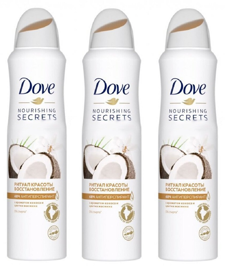 Dove Дезодорант-антиперспирант спрей женский Ритуал красоты восстановление с кокосом и цветком жасмина 150 мл - 3 шт информация: