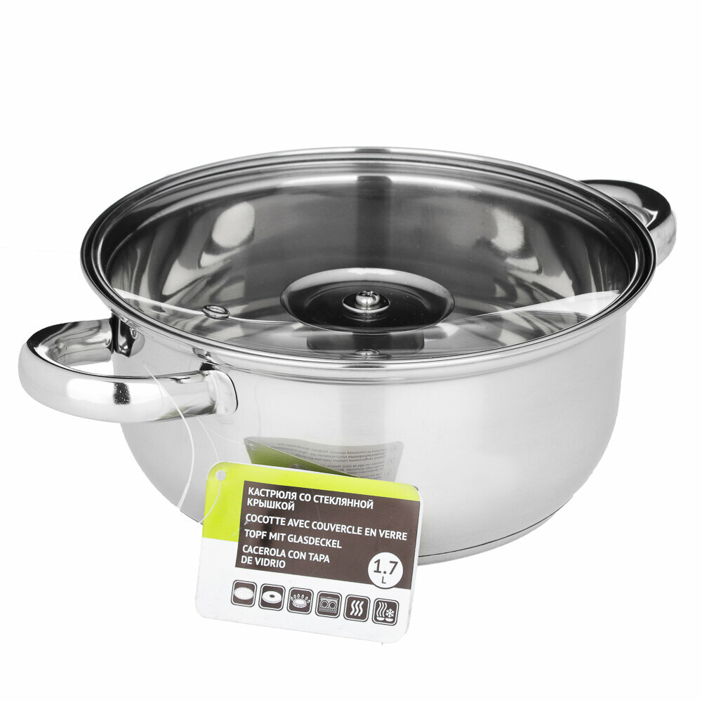 Кастрюля нерж сталь 1,7л Джерси 18х9,0см стекл крышка