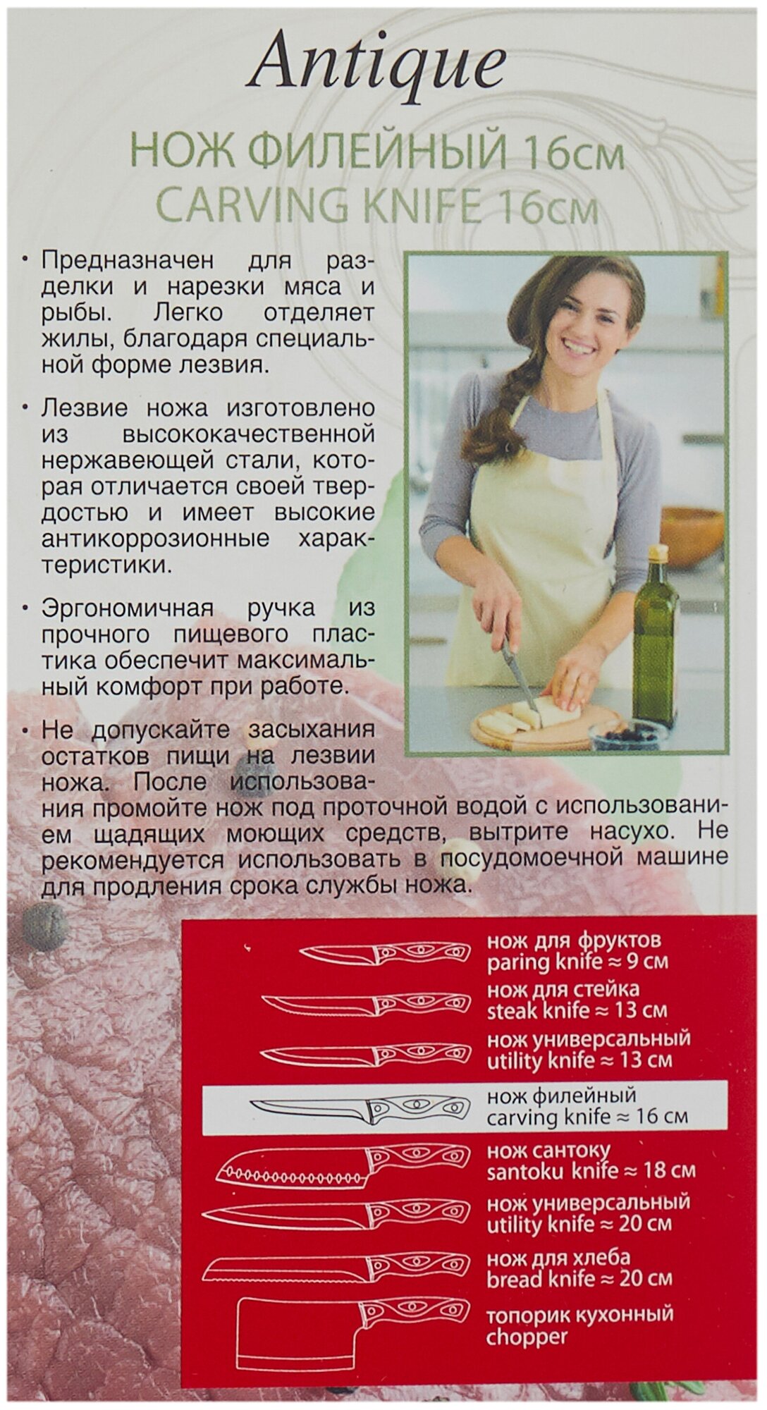 Нож филейный ANTIQUE 16см нжс,пласт. информация: