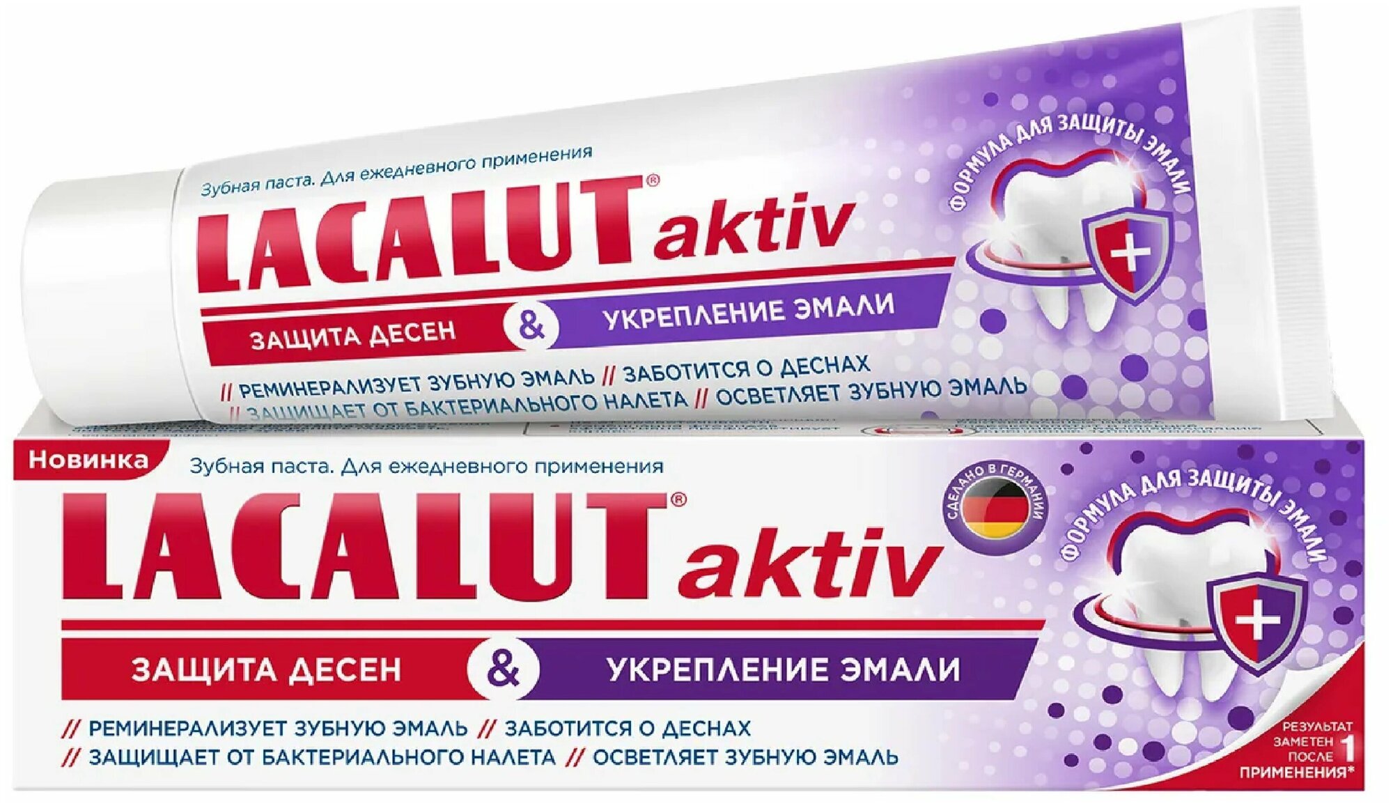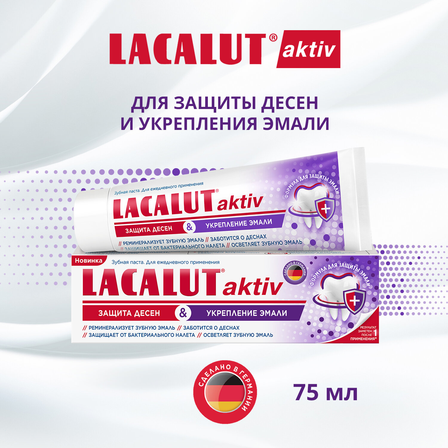 Lacalut aktiv защита десен и укрепление эмали зубная паста, 75 мл