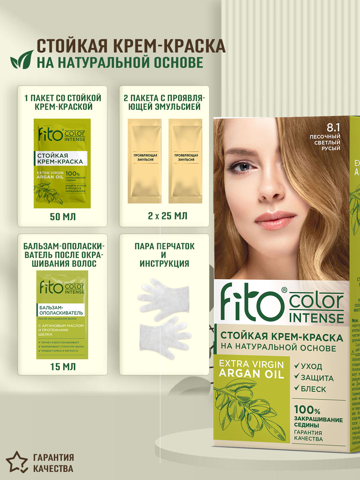 Отзывы на Стойкая крем-краска для волос Fito Color Intense, 8.1 Песочный светлый русый Fito Косметик, 3 шт по 115 мл