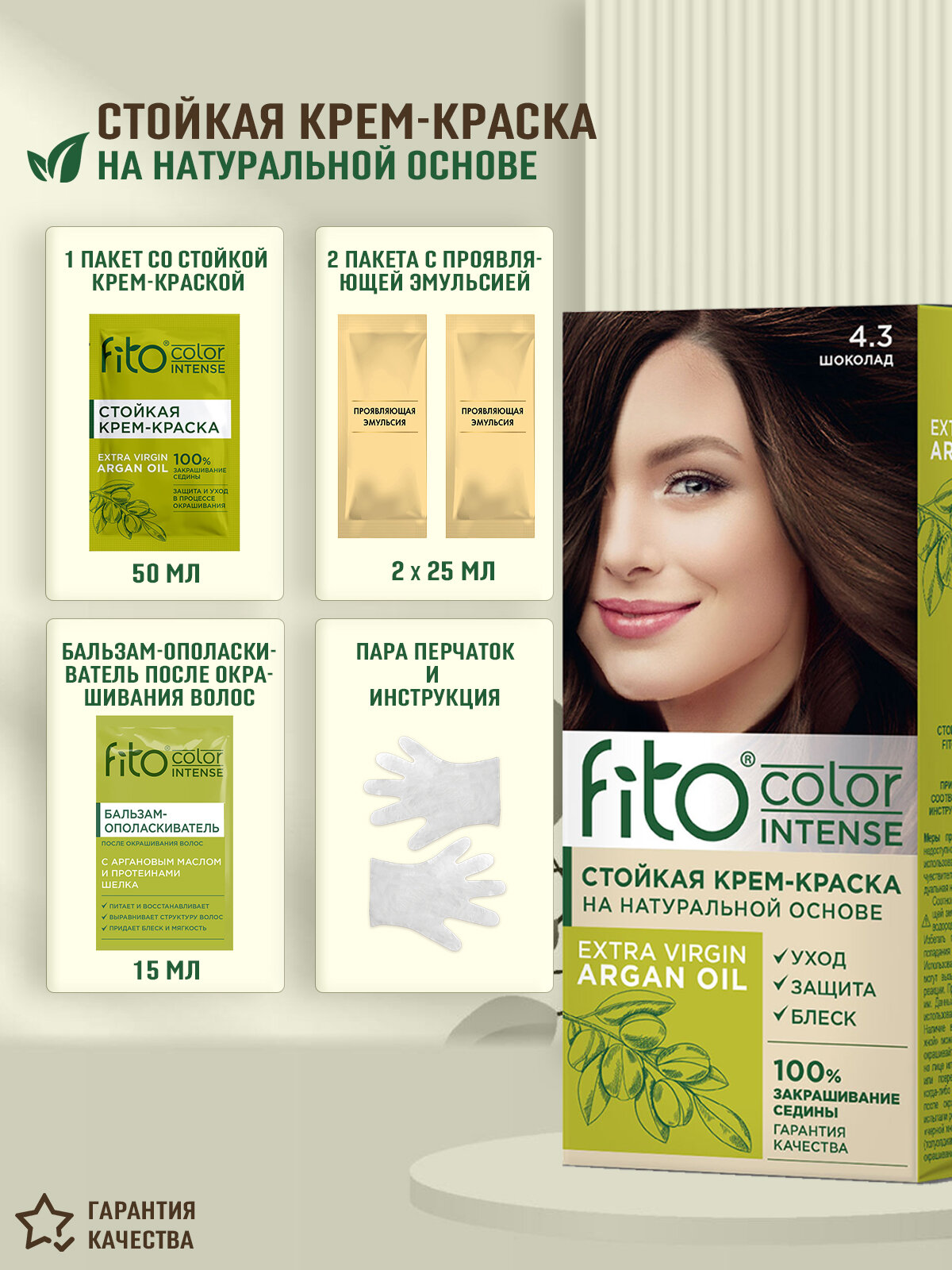 Стойкая крем-краска для волос Fito Color Intense,4.3 Шоколад Fito Косметик, 3 шт по 115 мл информация: