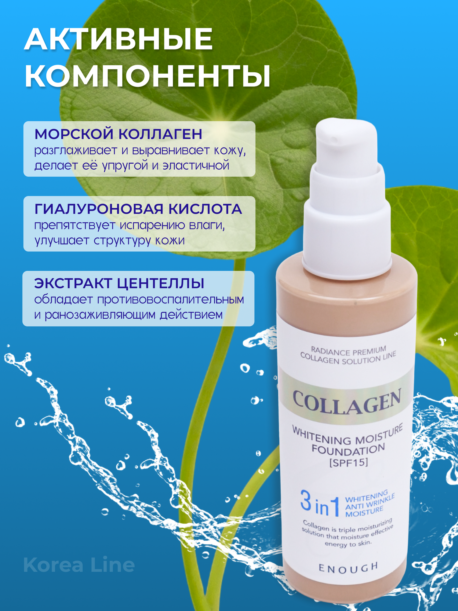10 цен на Тональный крем для лица 3 в 1 с коллагеном, с ниацинамидом ENOUGH Collagen 3 in1 Whitening Moisture Foundation SPF15, тон 21, Корея