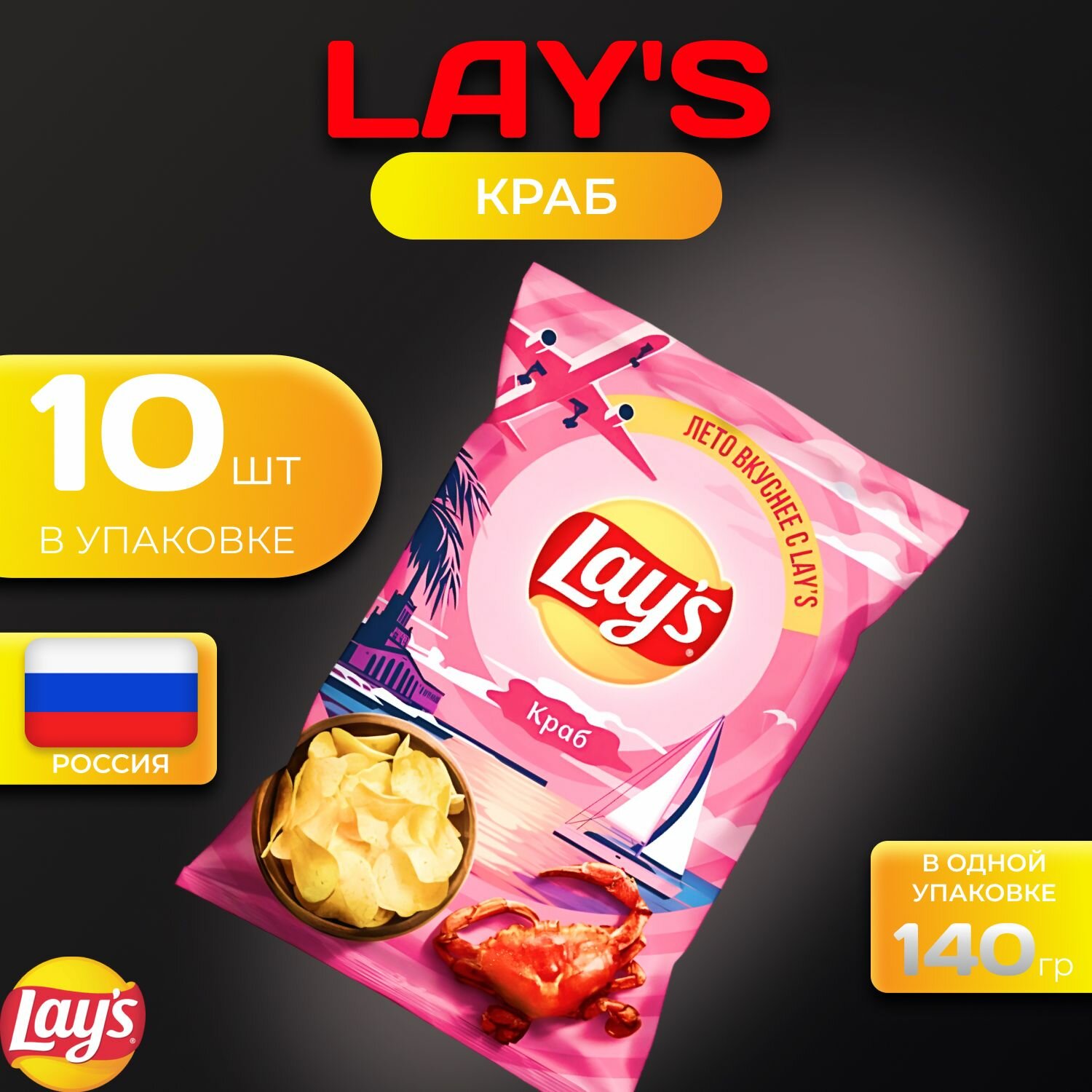 10 цен на Картофельные чипсы Lays "Краб" 140 гр. 10 шт. Лейс