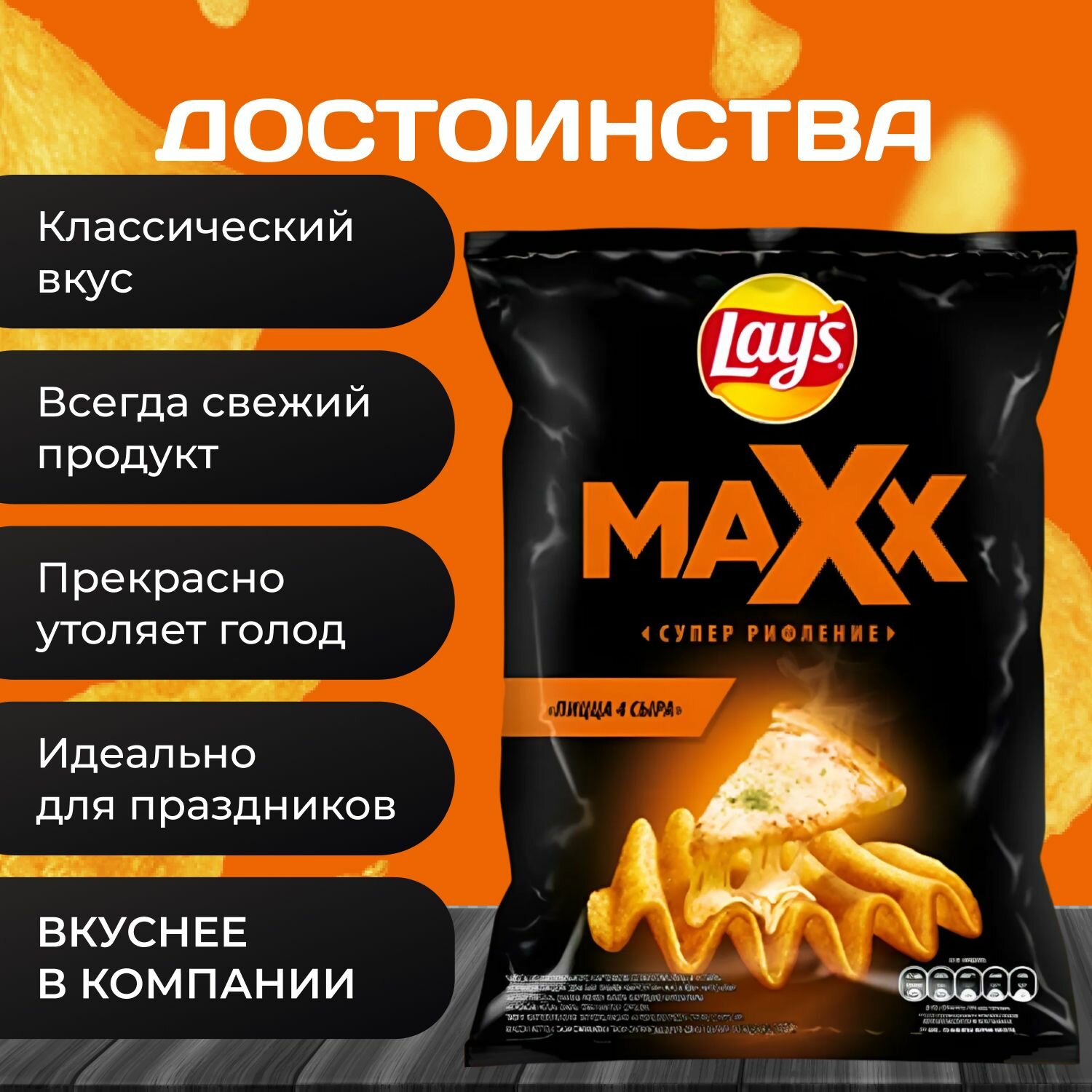 Картофельные чипсы Lays MAXX "Пицца 4 сыра" 110 гр х 10 шт. информация: