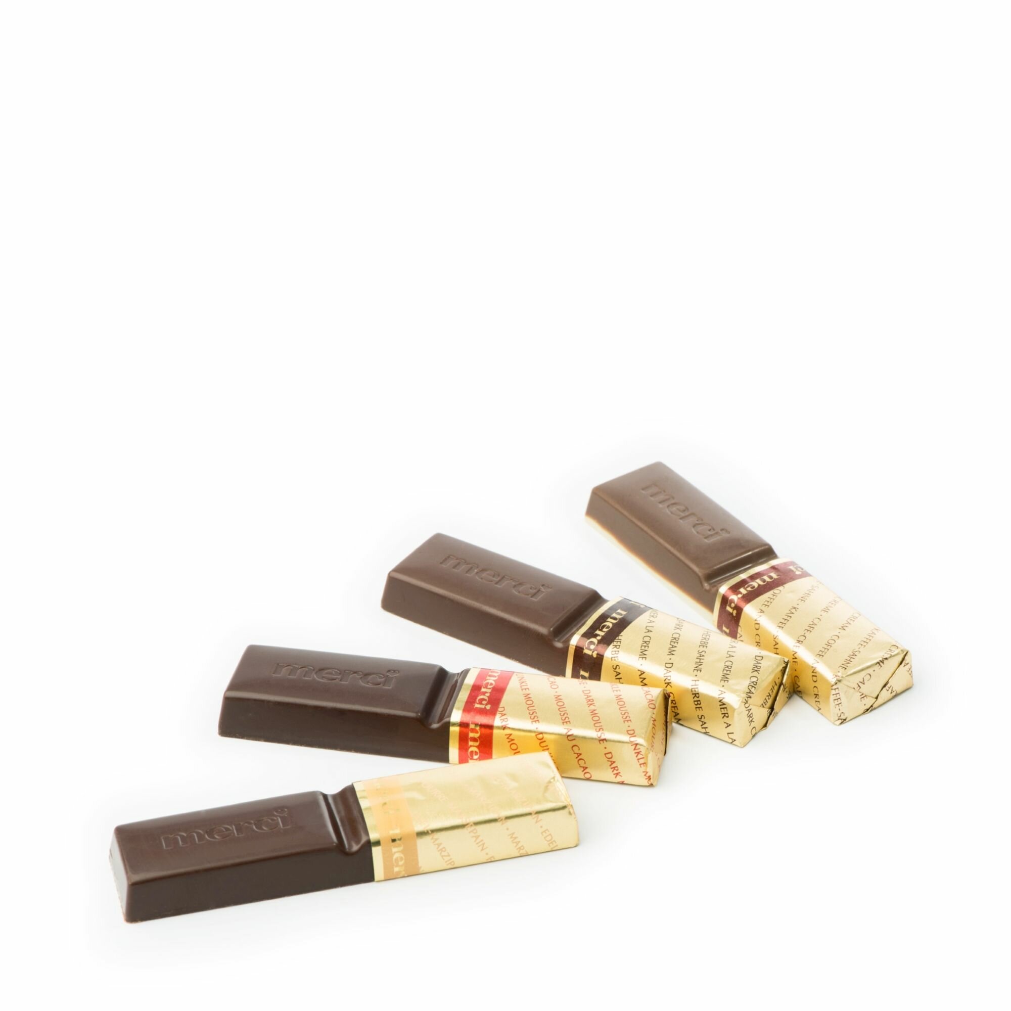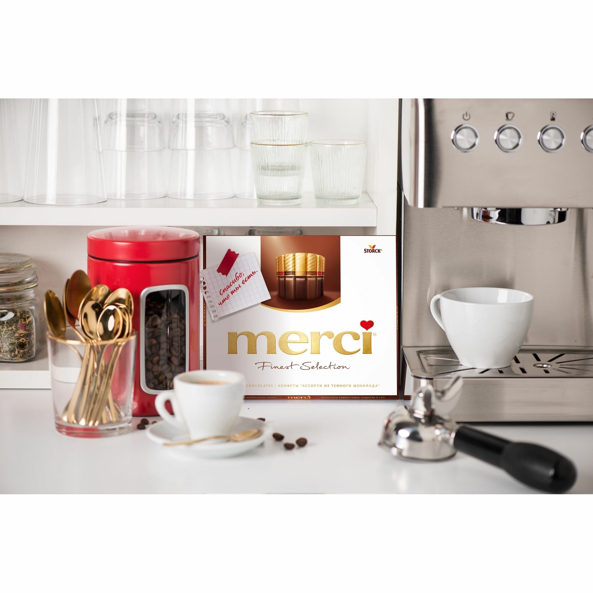 Merci, подарочный набор ассорти с темным шоколадом, конфеты в коробке, произведено в Германии, 250г информация: